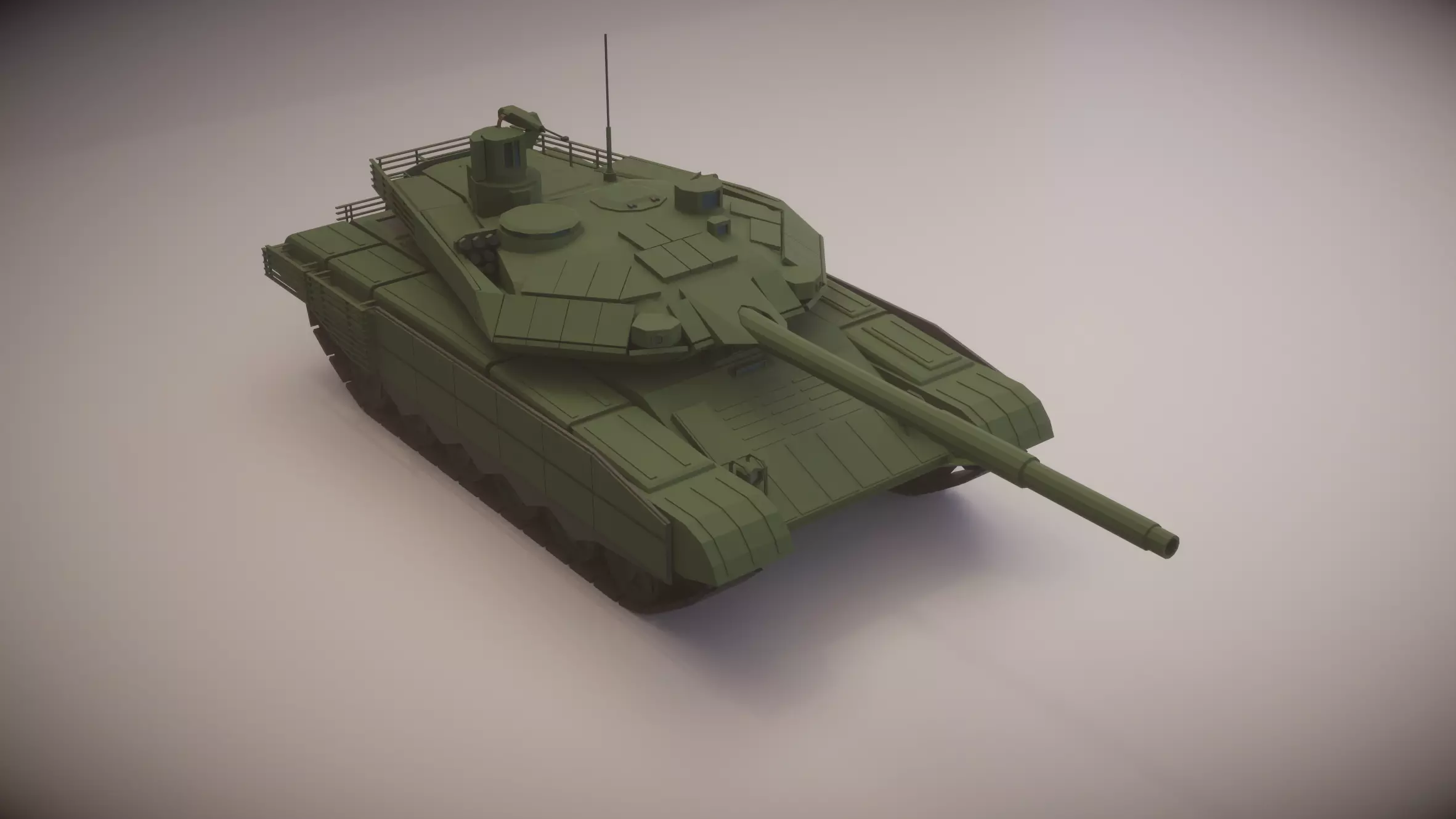 A simple low poly T-90M Tank with fully movable wheels, turret and gun