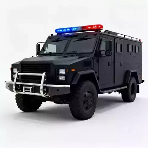 The Overall Concept This asset is a heavy-duty armored vehicle used by special police forces (SWAT) or private security teams. It is built to transport a squad of officers safely into dangerous situations like bank heists or riots.