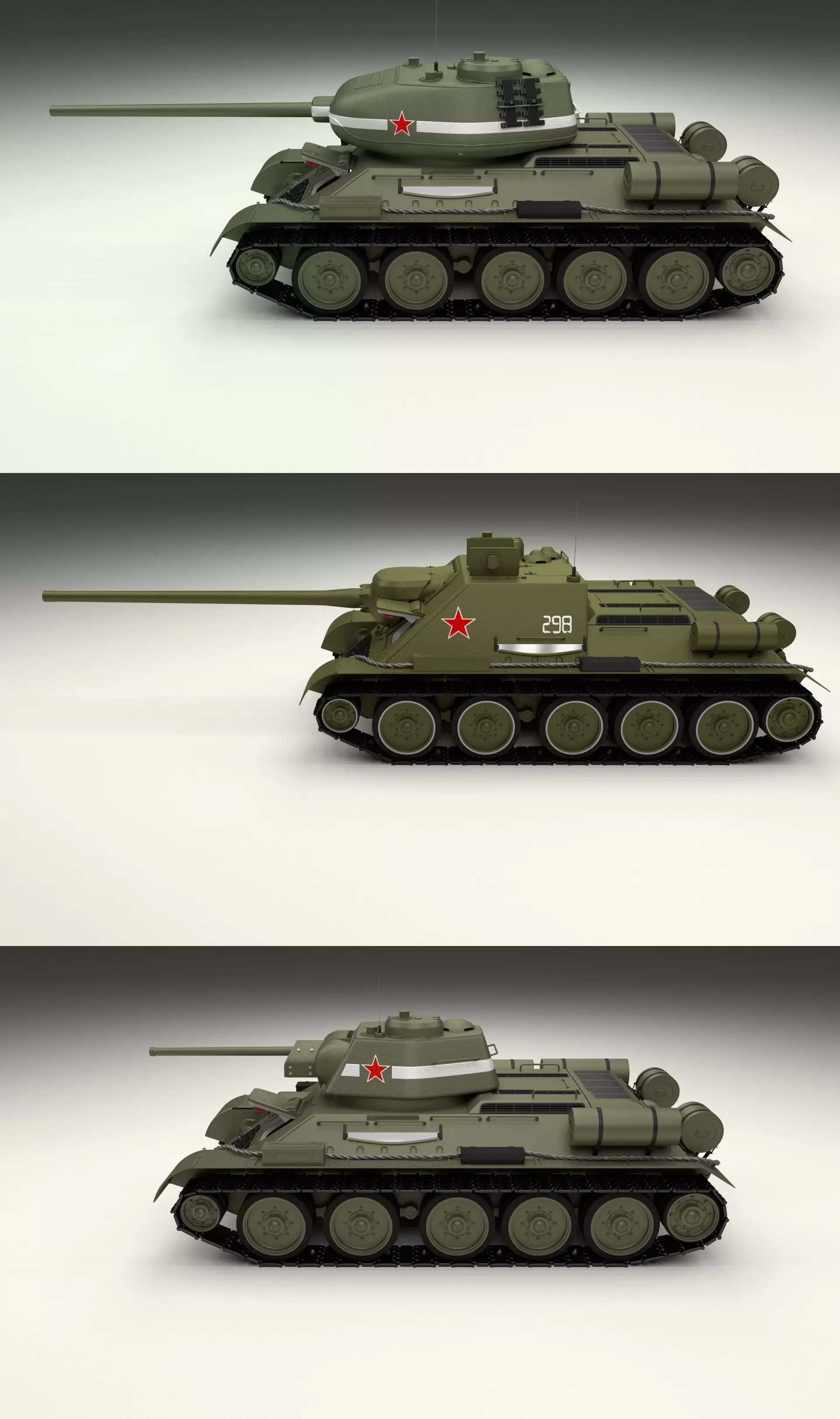 General:3D model pack consisting of the following WW2 items:-SU-100 with interior-T34-85 with interior-T34-76 with interior