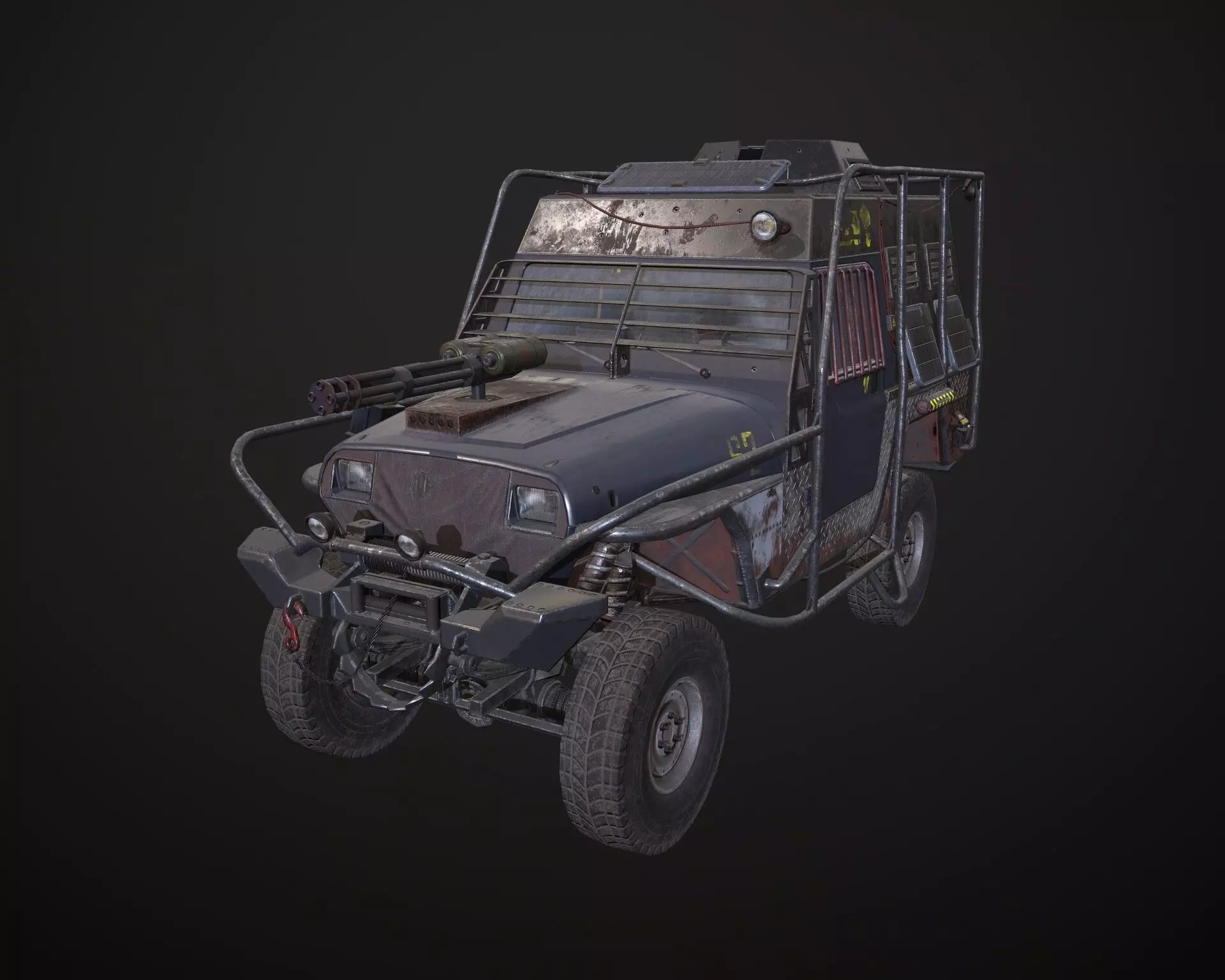 The jeep is based on the vehicle from the series The 100 and was built from scratch, with certain elements simplified. This model is suitable for optimized game projects.Game readyMap baked