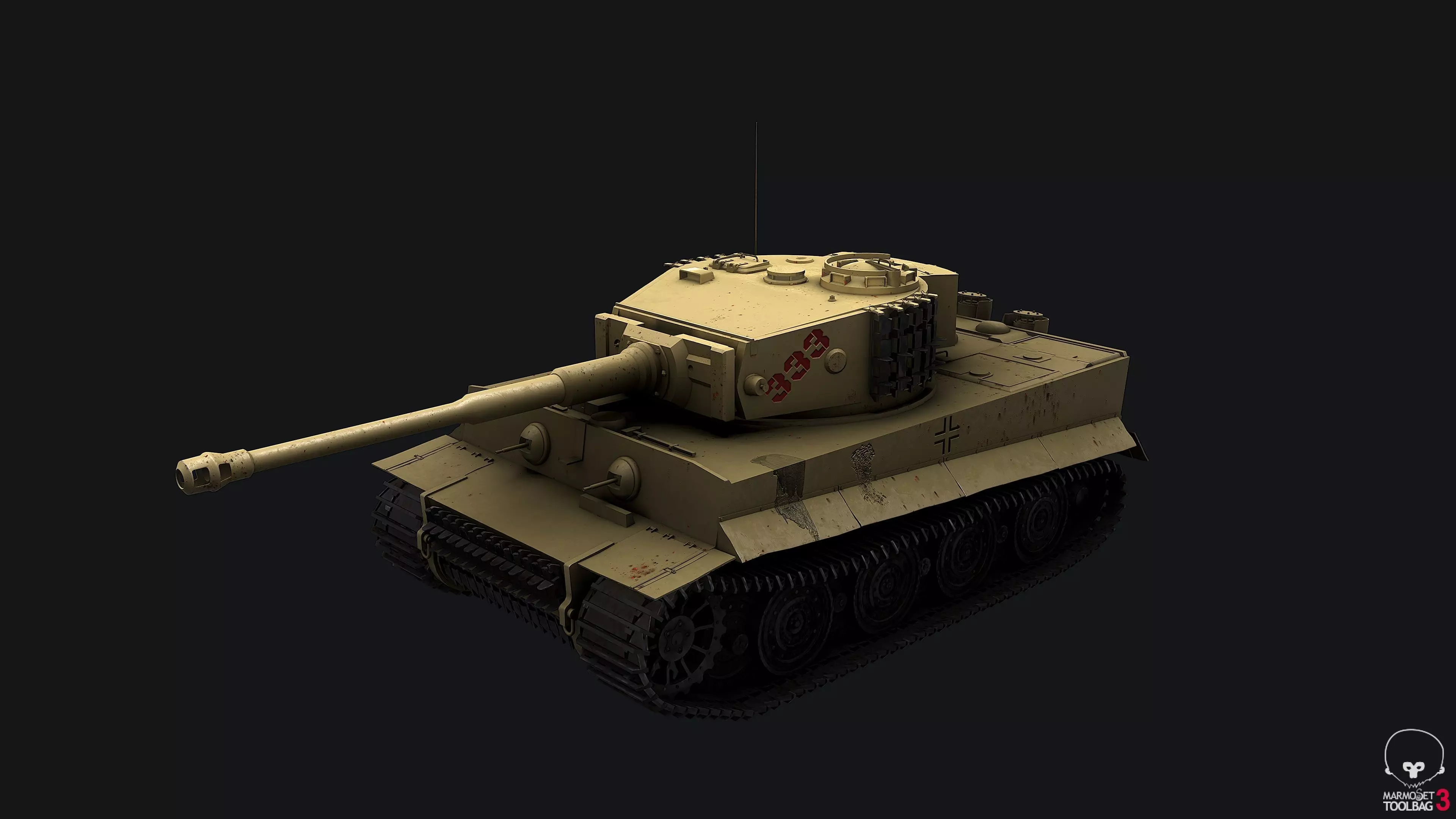 WW2 Tiger I German Tank Desert PBR Game-Ready.