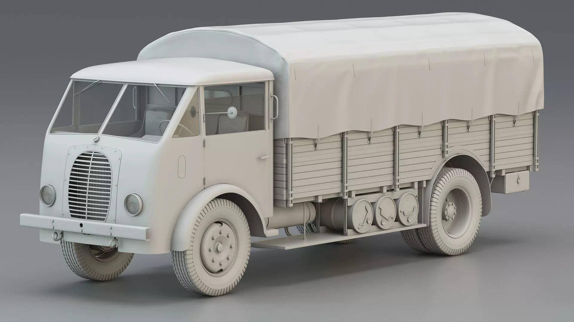Highly detailed and historically accurate 3D model of a WWII French 5-ton heavy cargo truck.The model is built as a low poly mesh with a Turbosmooth modifier, allowing you to easily control the mesh density.