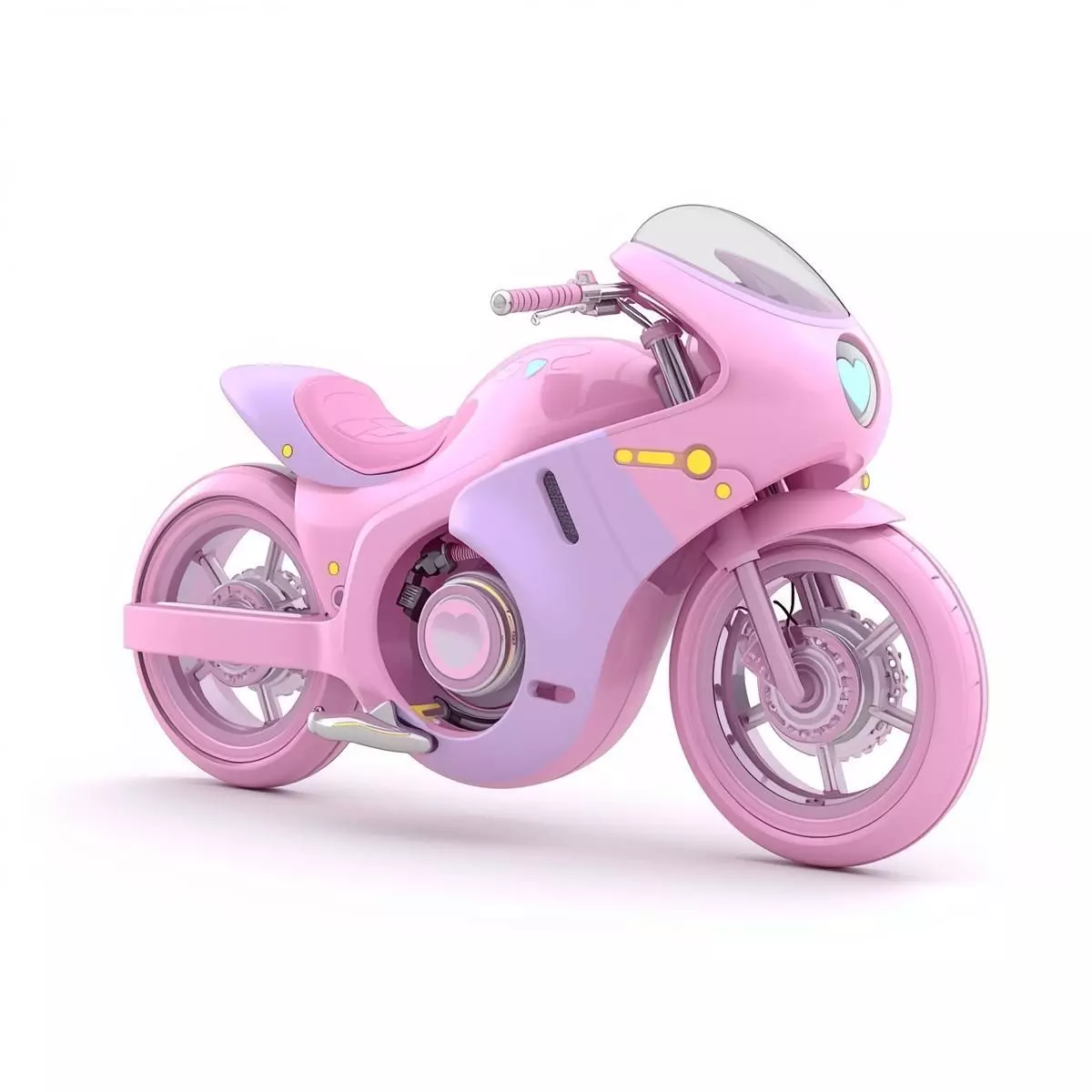Tags3d model, motorcycle, futuristic bike, kawaii sci-fi, aesthetic design, pastel pink, lavender palette, heart-shaped engine, game ready asset, stylized vehicle, romantic tech, 3d prop, cinematic asset, social simulation, urban sci-fi, aerodynamic bike, glowing engines, feminine sci-fi, high-gloss finish, 3d transporto