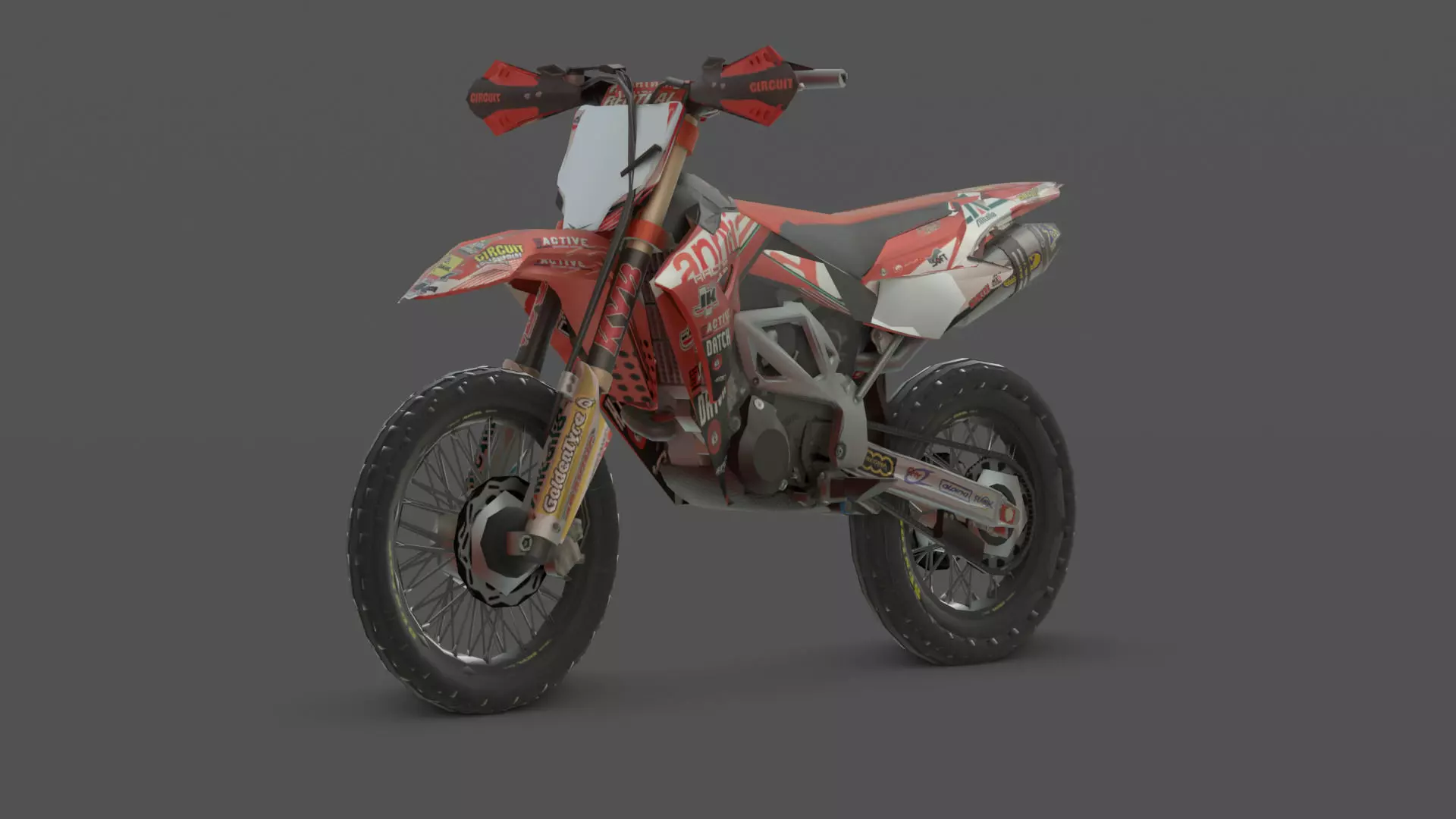 A rugged and realistic 3D model of the Aprilia MXV 450 motocross bike, perfect for racing simulations, sports games, or dirt trail scenes. Built with high-quality mesh and accurate off-road detailing.