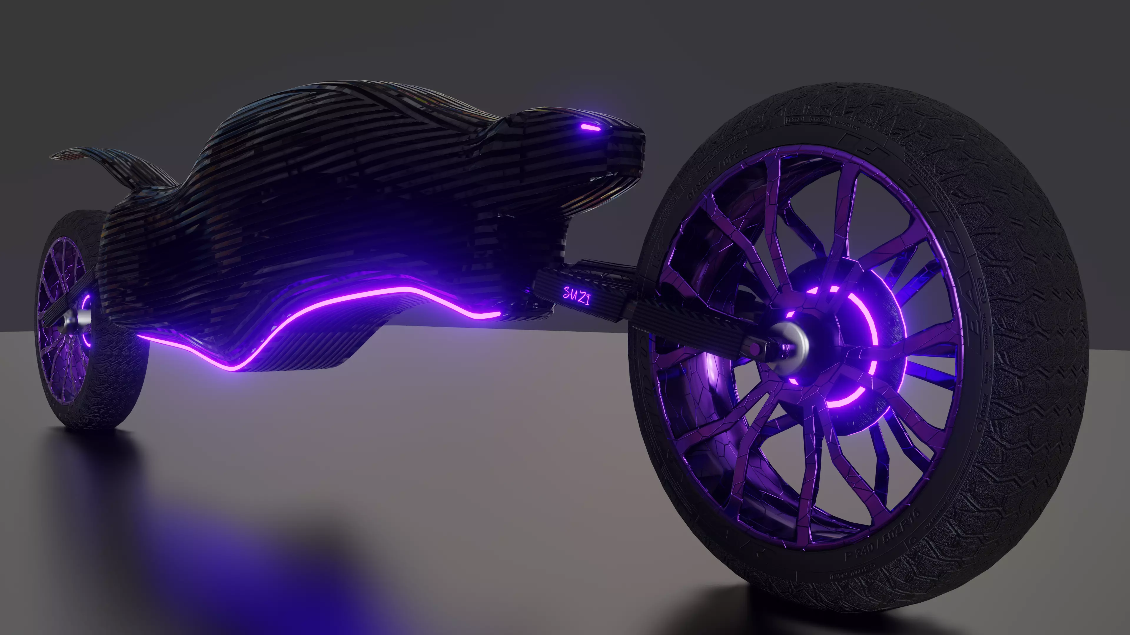 I created and rigged this sci-fi unmanned motorcycle in Blender. I wanted it to resemble a black panther by using as little polygons as possible to make it user friendly and some how game-ready. This motorcycle doesn't have handlebars because it is unmanned and operates on its own.