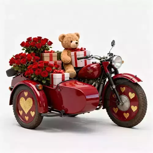 The Overall Concept This asset is the ultimate romantic delivery vehicle. It features a classic vintage motorcycle with a sidecar, repurposed from military use to deliver love and gifts, making it a charming addition to any holiday-themed game level.