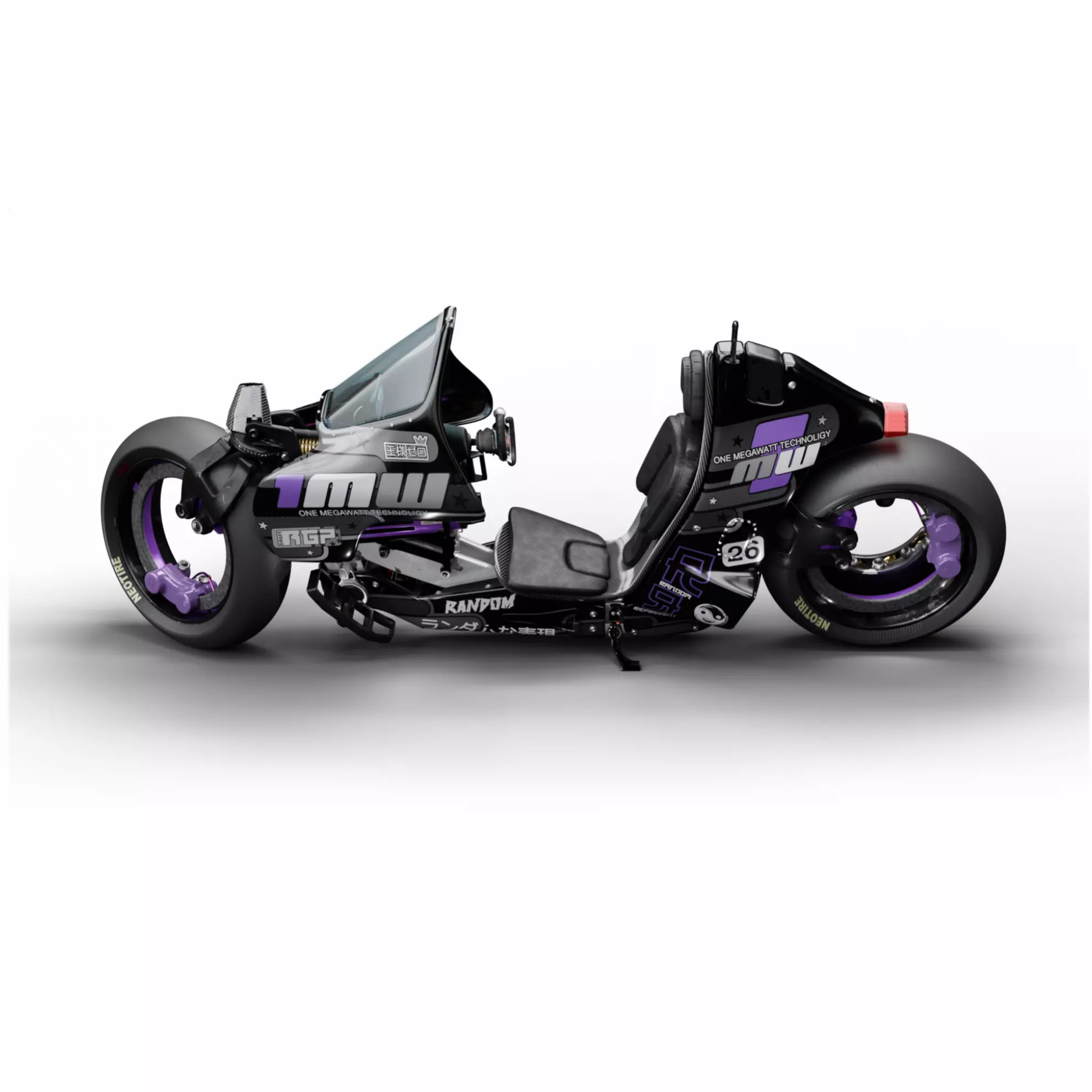 This is Random Represent version of futuristic cyberpunk electric motrocycle.