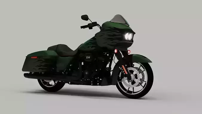 This 3D model represents the Harley Davidson Road Glide, accurately capturing the essential design and structure of the original motorcycle.
