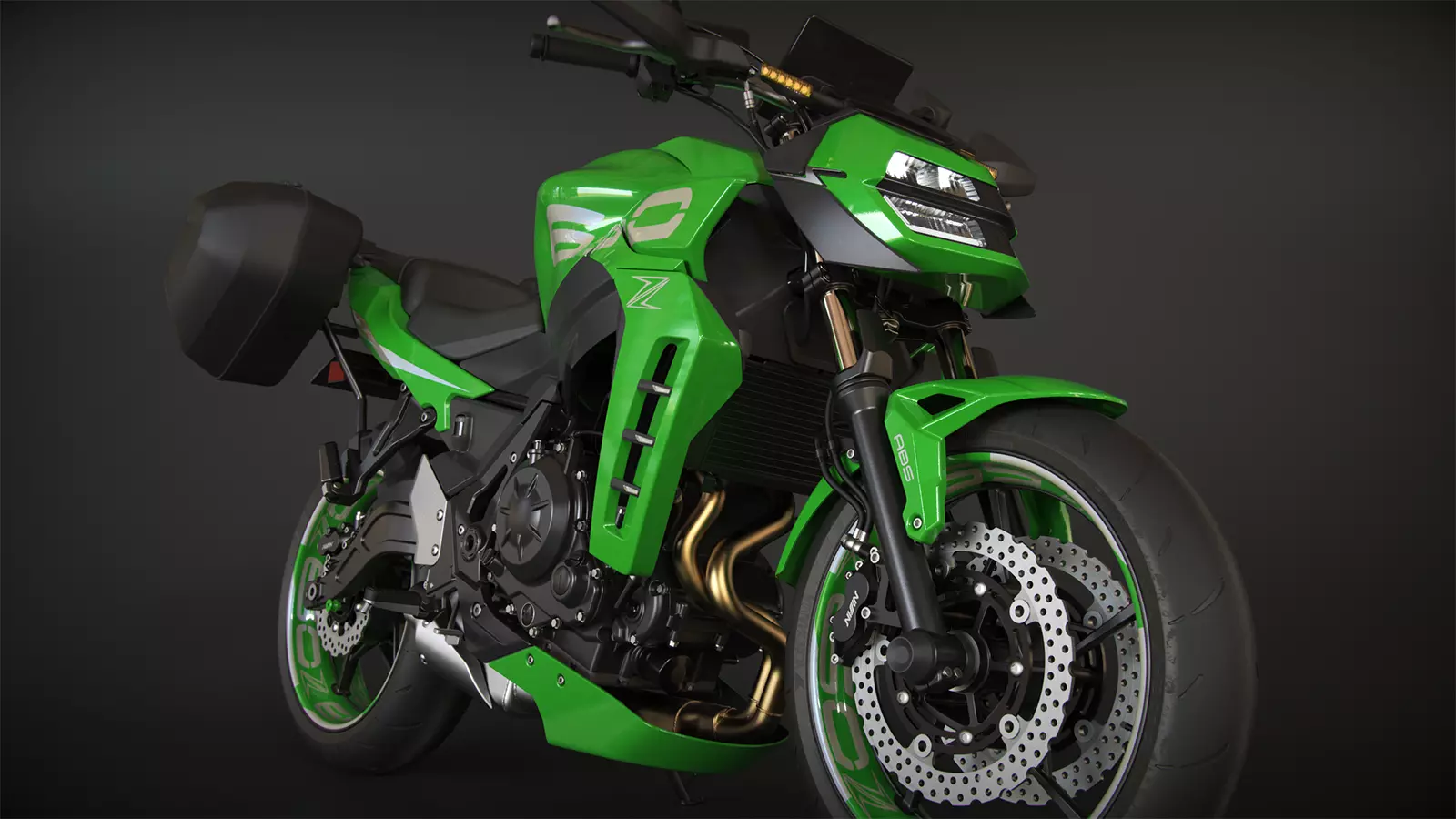 3D model created as closely as possible to the real Kawasaki, based on dimensions from open sources. However, some body panels, headlight, rear light, number plate, control plates, heel guards, and belly pan have been redesigned. All parts of the model are separate objects and grouped (Front End, Fork, Rear End, Swingarm, Body, Panels, etc.). You can easily change all materials.