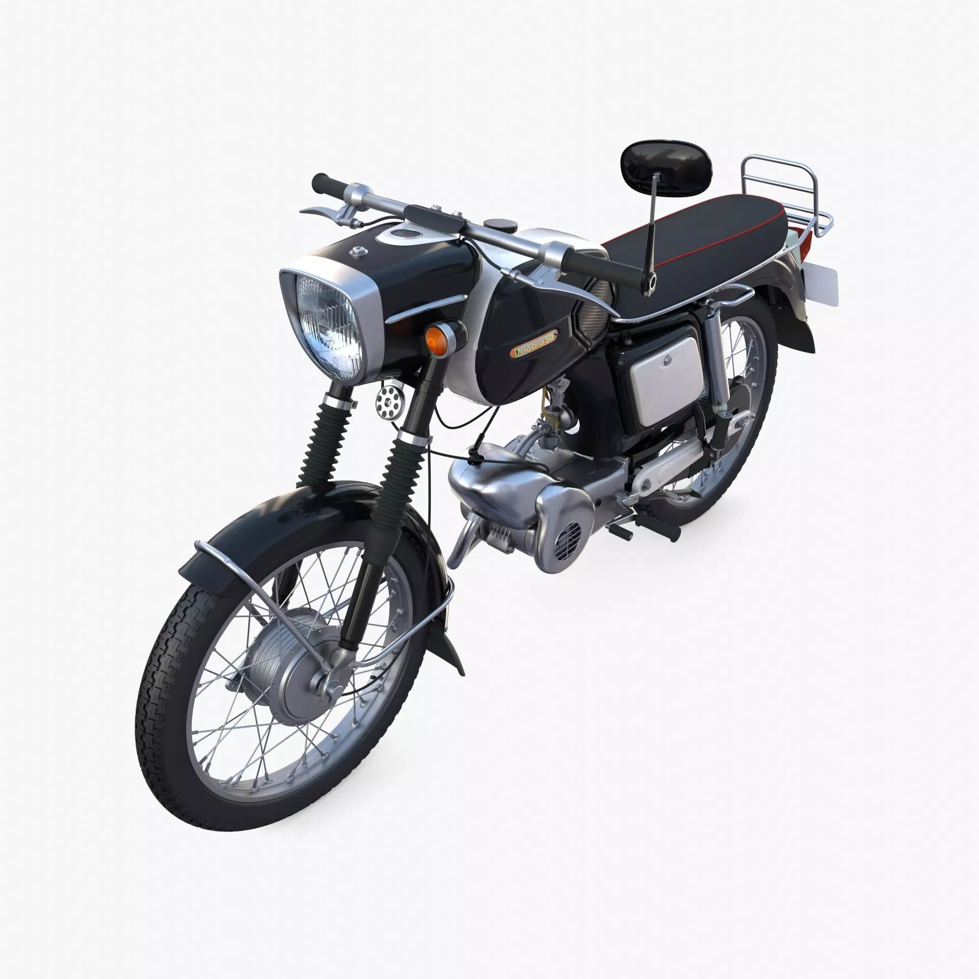 Highly detailed Moped 3d model rendered with Cycles in Blender, as per seen on attached images. The model is very intricately built, it has all cables, brakes, suspension elements modeled. The frame is also entirely modeled even though a part of it can be seen because the rest is covered by all other elements.It comes with 2 versions per format, one with solid modeled tires and the other one lower poly with tire details resulted from a bump map. The original poly count is for the lower poly version.The 3d model is scaled to original size in Blender.