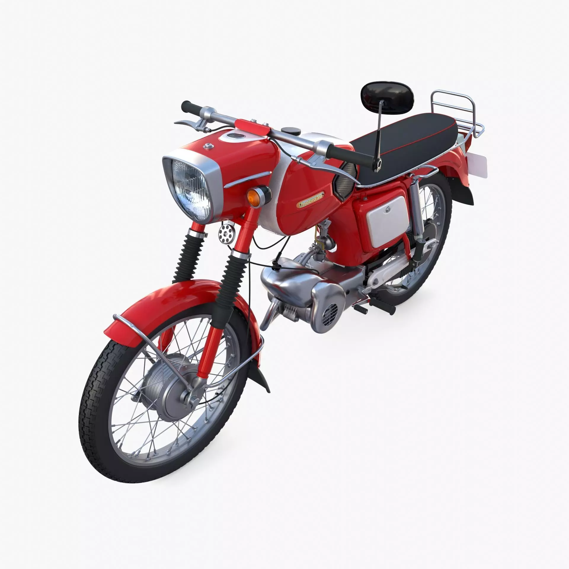 Highly detailed Moped 3d model rendered with Cycles in Blender, as per seen on attached images.The model is very intricately built, it has all cables, brakes, suspension elements modeled. The frame is also entirely modeled even though a part of it can be seen because the rest is covered by all other elements.It comes with 2 versions per format, one with solid modeled tires and the other one lower poly with tire details resulted from a bump map. The original poly count is for the lower poly version.The 3d model is scaled to original size in Blender.