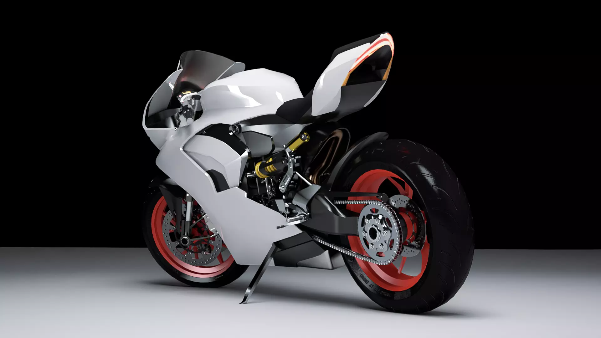Separated Wheels, Suspensions, Brake Discs, Handlebar, Kickstand and Translucents parts with proper pivots adjusted.
