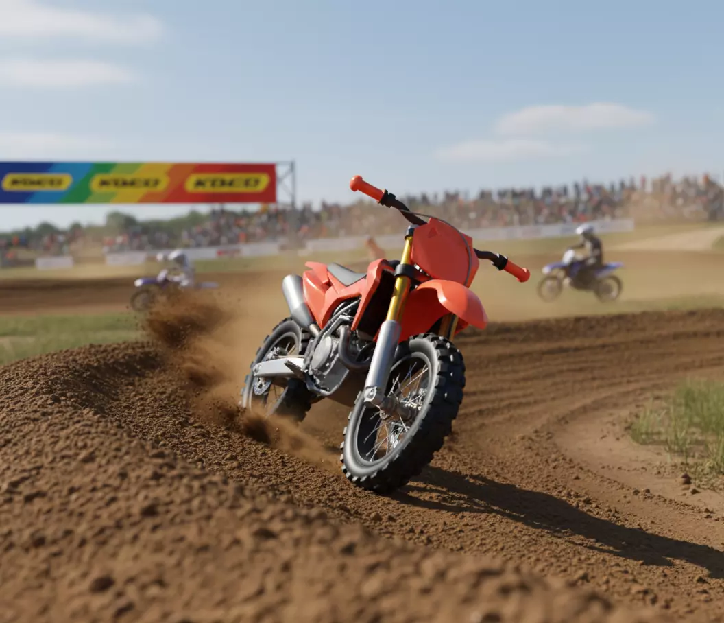 Keywords3D model, cartoon dirt bike, red motorcycle, off-road bike, PBR textures, 3D printing, digital asset, game development, animation, outdoor recreation, extreme sports, motocross, toy bike, stylized design, bold color, playful design, mechanical detail, vehicle asset, motorbike, two-wheeler, rugged terrain, adventure gear, dynamic pose, urban setting, nature scene, action vehicle, youth culture, adrenaline, competition, dirt track