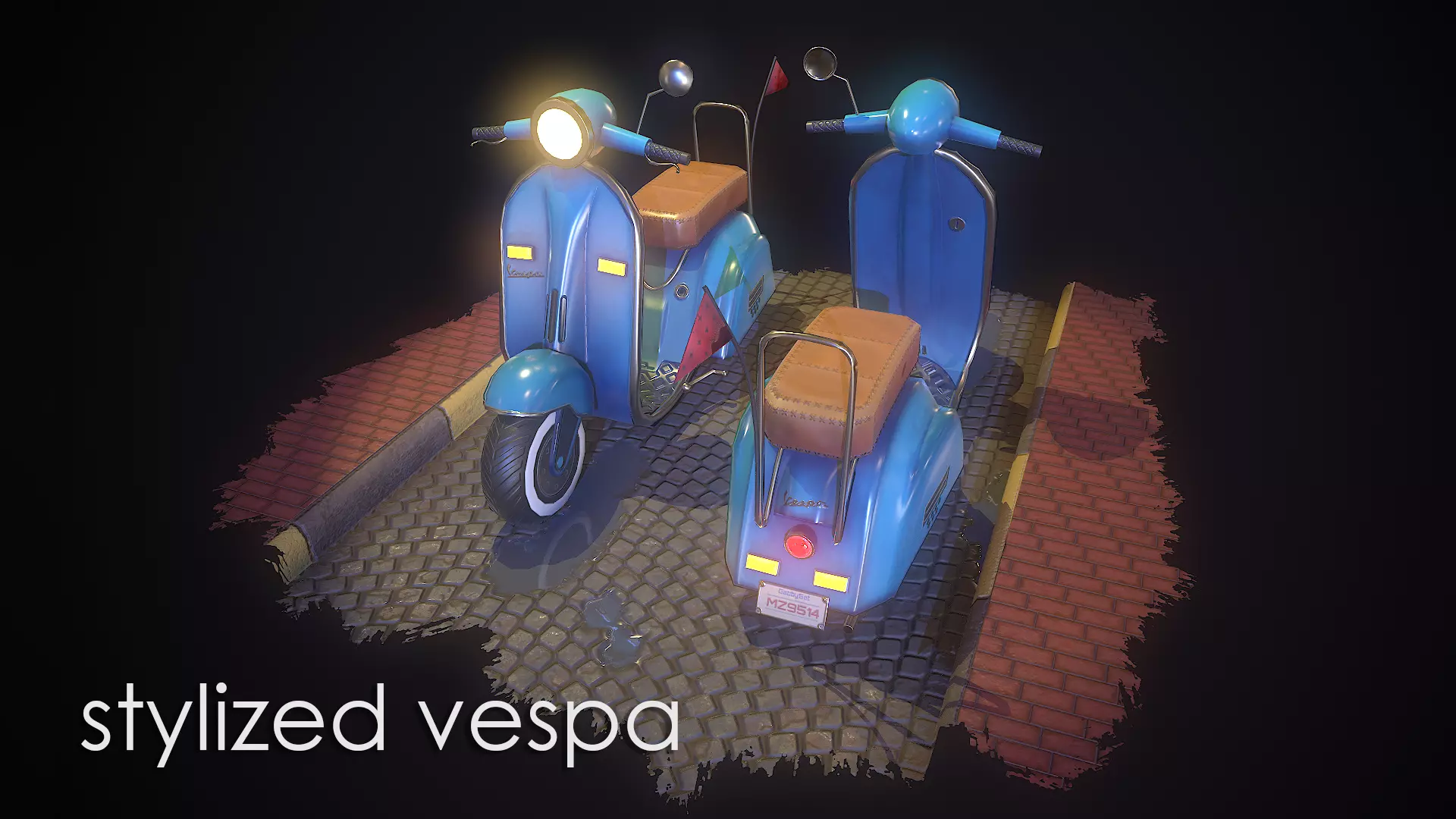 Contains 1 model and 4 texture variations of a Stylized Low-Poly Vespa ( Blue / Red / Yellow / Green )