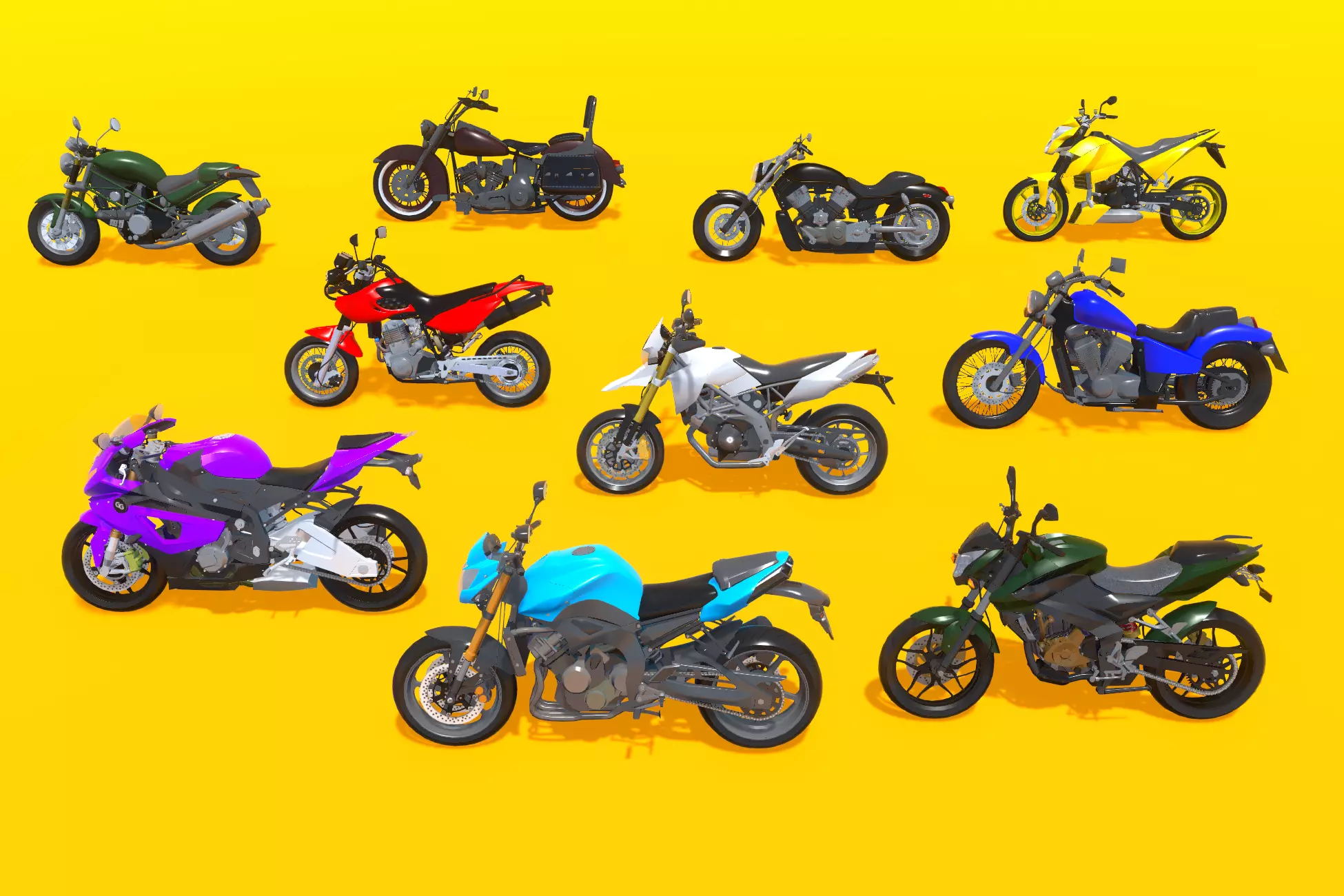 - High-Quality Textures: Detailed textures give each bike a realistic and eye-catching appearance, even in a low-poly format.
