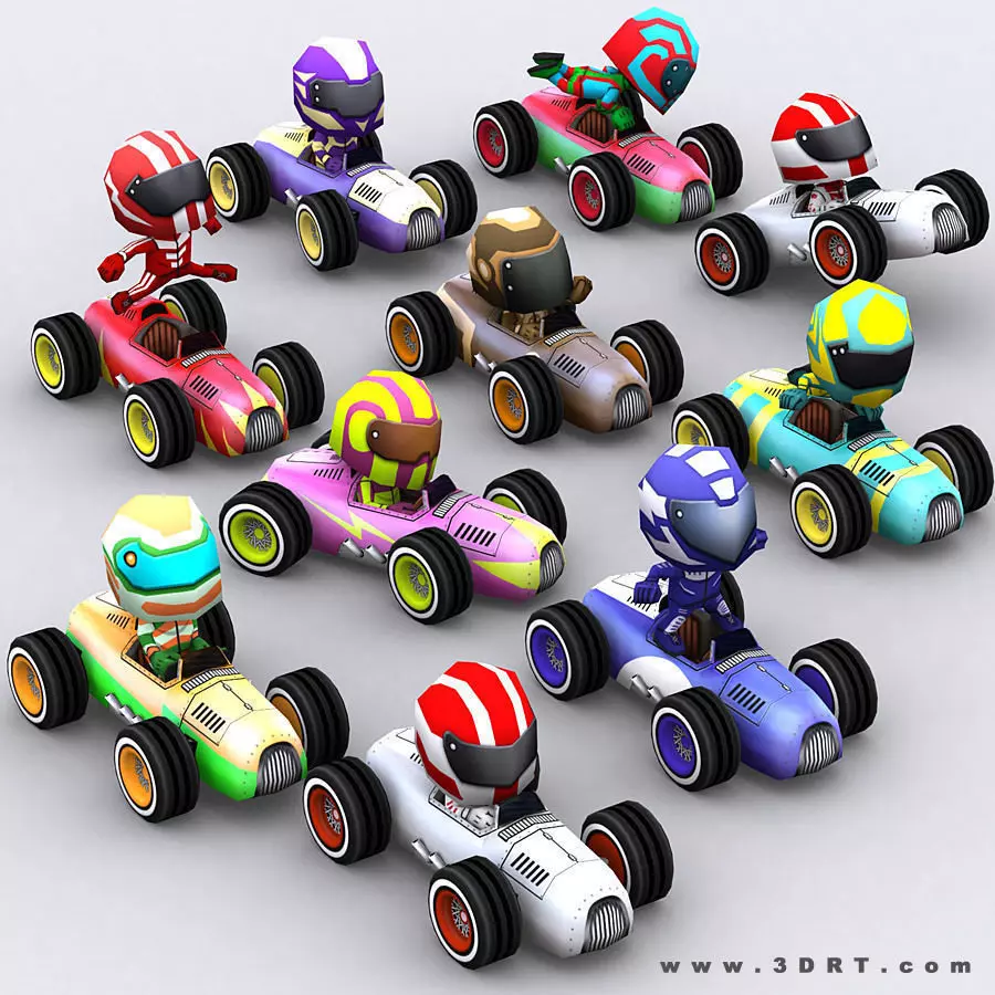 Chibii racers retro cars. Animated lowpoly 3d pack optimized for mobiles.10 cars skins, 20 chibii racers skis.2048x2048 .png texture source files included.Available in a Chibii racers bundle.