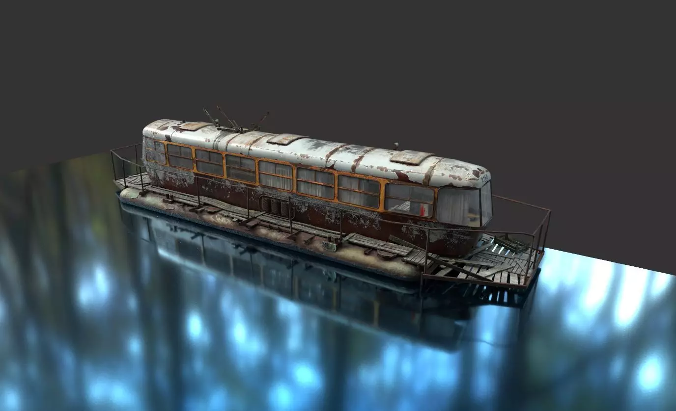 Model of Abandoned Riverside -Waterside Tram. Model is very realistic.It has 8 PBR material.Maps are diffuse-specular-glossiness-height and normal. Also, PBR Metallic-Roughness ( Basecolor-Metallic-Normal-Roughness-Height) workflow has been added. Model's textures has two sizes; 4096x4096-2048x2048. All maps are PNG formats and unwrapped, non-overlapping.