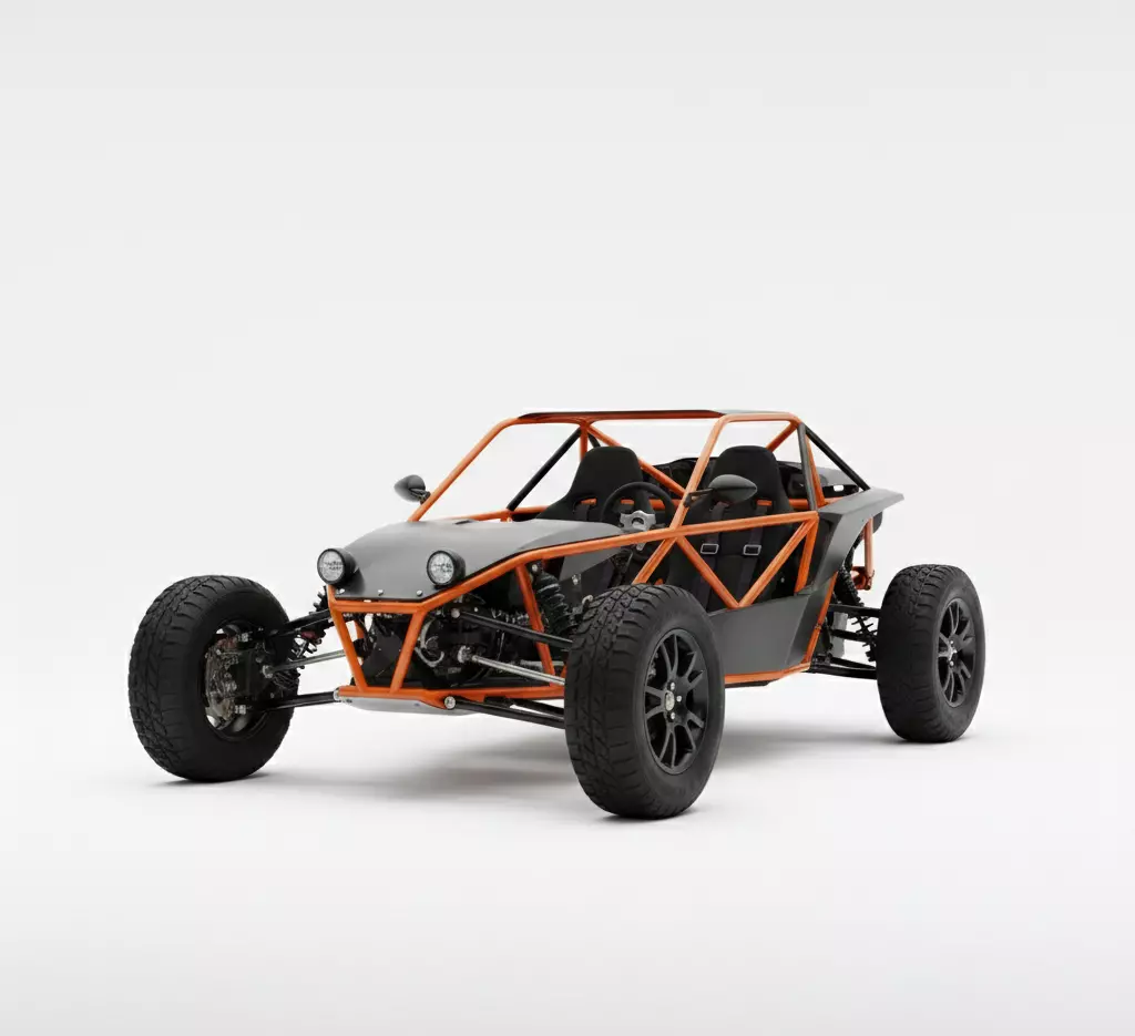 This high-fidelity 3D model expertly recreates the Ariel Nomad, an ultra-lightweight, high-performance vehicle designed to bridge the gap between a supercar and a rally car. The model features a striking orange-finished tubular steel spaceframe that serves as both the chassis and a complete safety cage. Every mechanical detail is meticulously rendered, from the mid-mounted engine to the complex, long-travel outboard suspension system equipped with double wishbones and coilover shocks. The exterior showcases rugged, non-structural body panels made of toughened polyethylene, paired with high-traction all-terrain tires and integrated off-road lighting. With its minimalist, waterproof cockpit and authentic racing harnesses, this asset is an ideal choice for off-road racing simulations, tactical vehicle visualizations, or as a premier addition to any digital gallery of specialized performance machines.