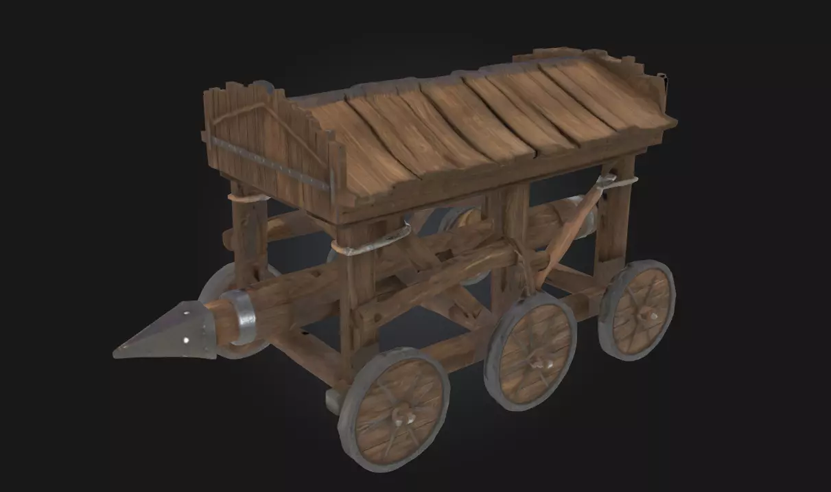 The Battering Ram Cart model embodies the raw power and ingenuity of medieval siege warfare, ideal for historical games, cinematic battle scenes, or 3D-printed dioramas. This robust wooden cart, reinforced with iron and topped with a sloped canopy, houses a massive ram designed to breach fortified gates, evoking the relentless force of ancient assaults.