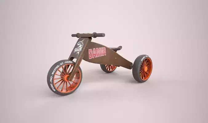 Bike-Damir wooden tricycle with wheels Low-poly 3D model
