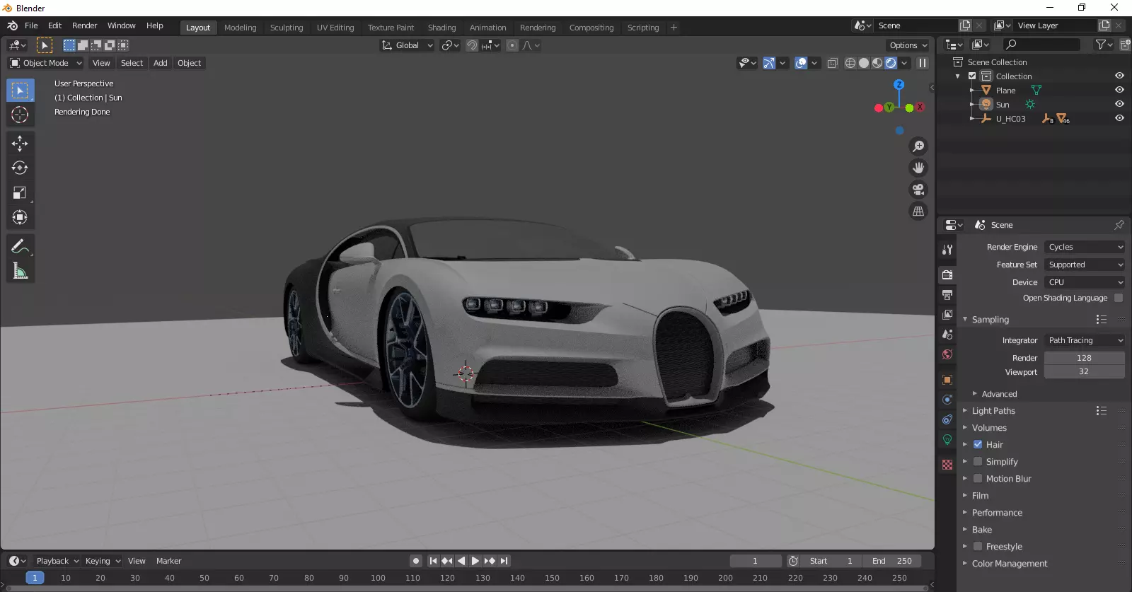 The model has material settings that define how surfaces look (color, shine, transparency, etc.).