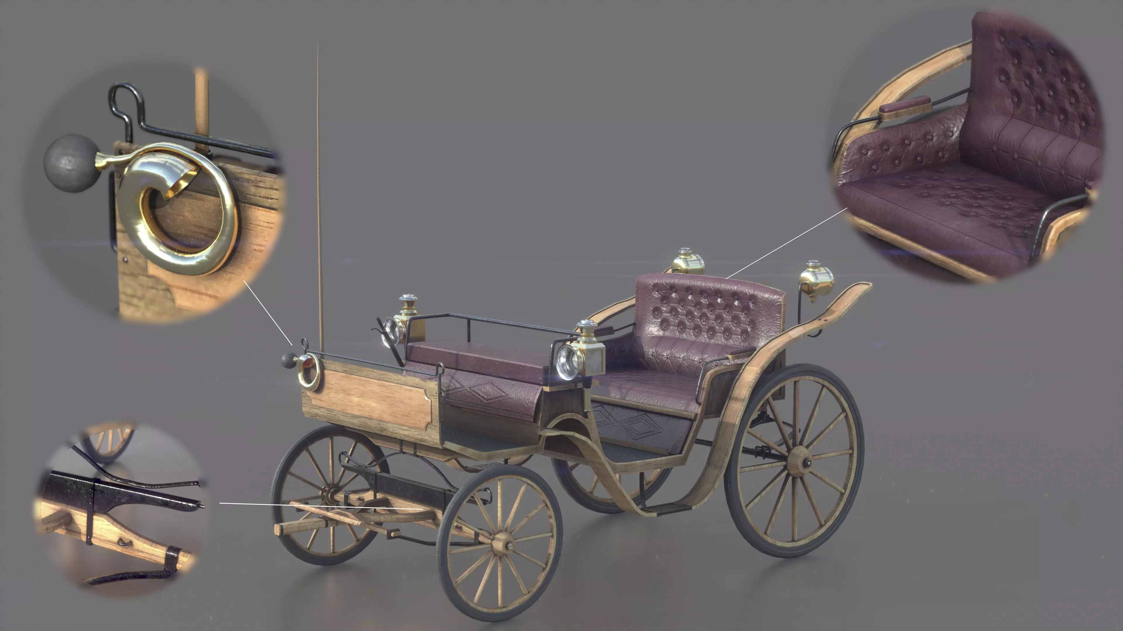 Carriage old fashioned Low-poly 3D model