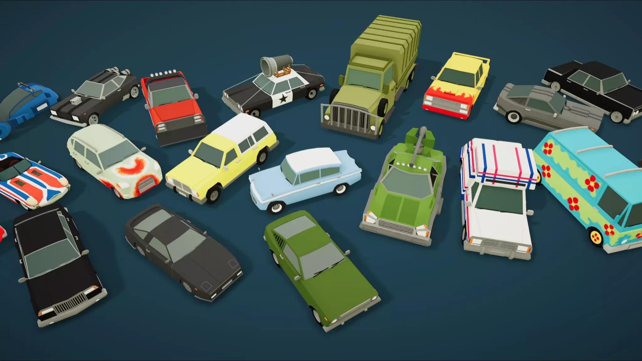 Cartoon Vehicles Pack, Contains the Cars for fast prototyping and game design. Twenty low-poly models optimize for mobile with textures. All models have a low poly count, ranging from 1200 polygons for the simplest models to 3000 polygons for the more complex ones. You can use them on Mobile, Desktop and Console platforms!