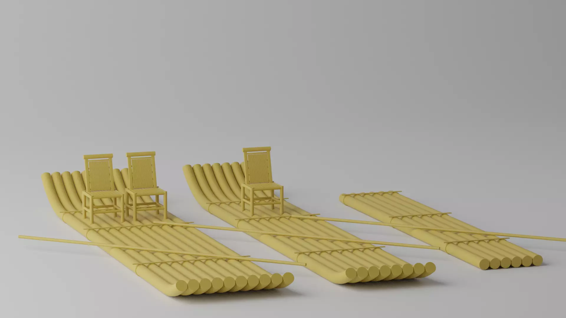 Cartoon Wooden Raft Boat Collection 3D model