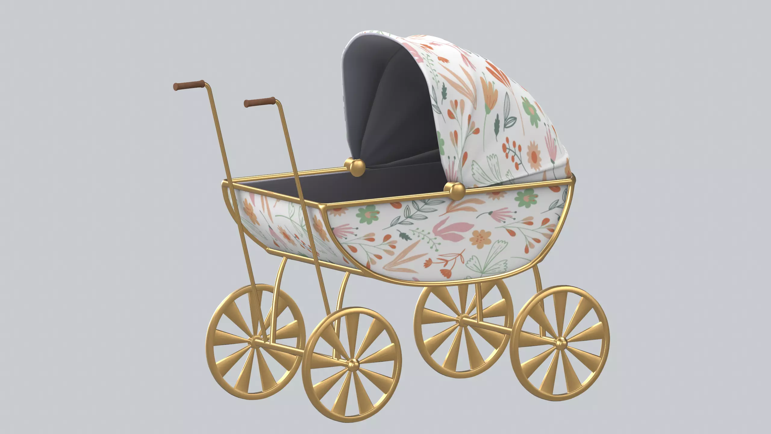 Doll carriage PBR modelModel size WxHxD: 0.65 x 0.58 x 0.3 MPolycount: - 39078 verts - 38514 polys - 76632 tris3D-Model with original dimensions.The file can be opened in all compatible packages.Archive include files with extensions .ma, .obj, .fbx, .stl, blender.