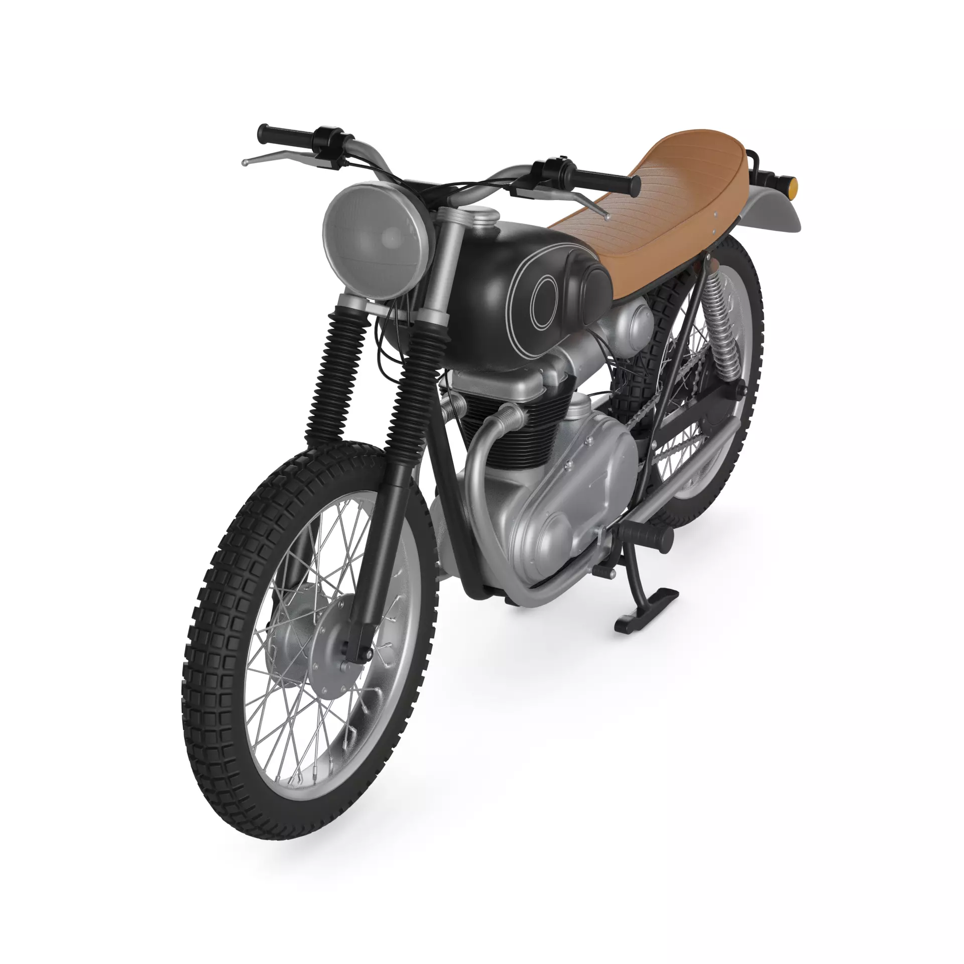A historical dual-sport motorcycle from the past, with a sleek black frame accented by silver detailing along the body. The worn leather seat shows years of use, while the scuffed metal foot pegs hint at countless off-road journeys. The dual headlights gleam in the sunlight, showcasing the rugged yet elegant design of this timeless vehicle.