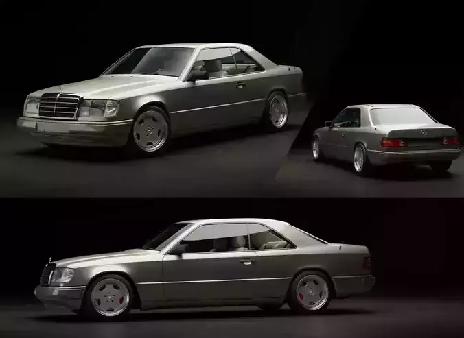 This is a high-quality 3D model of a 1988 E-Class AMG-style coupe, inspired by classic European performance cars of the late 1980s. The model captures the era’s boxy silhouette, luxury coupe proportions, and motorsport-influenced styling, making it ideal for vintage automotive visualization and cinematic rendering.