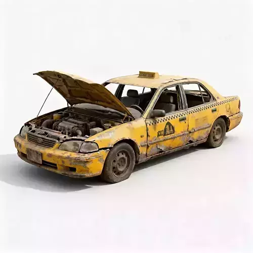 The Overall ConceptThis asset is a powerful piece of environmental storytelling. It is a classic yellow sedan taxi that has been completely destroyed and abandoned, making it a perfect centerpiece for post-apocalyptic city streets, disaster zones, or horror game settings.