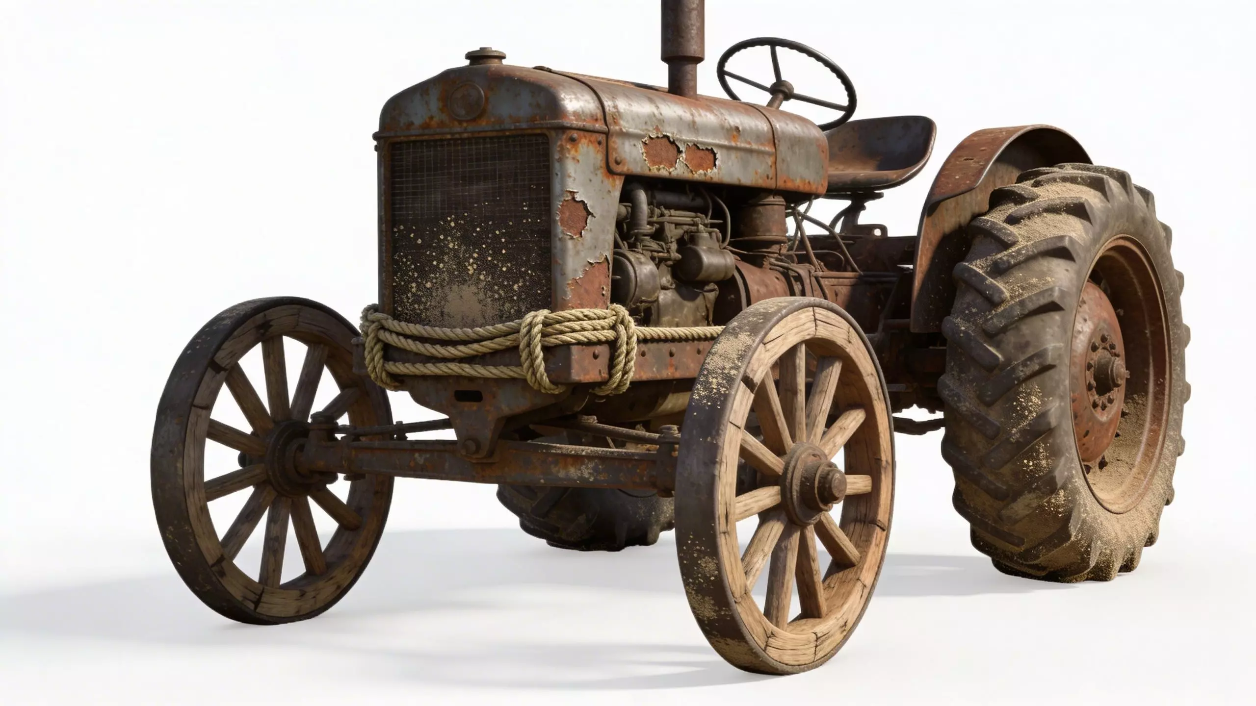 Vintage Industrial Silhouette: Classic tractor geometry treated with post-apocalyptic modifications for maximum environment immersion.