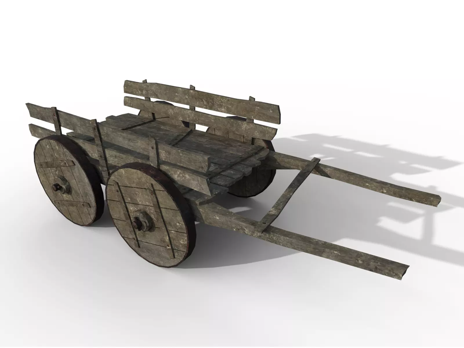LowPoly Wooden Cart Updated Low-poly 3D model