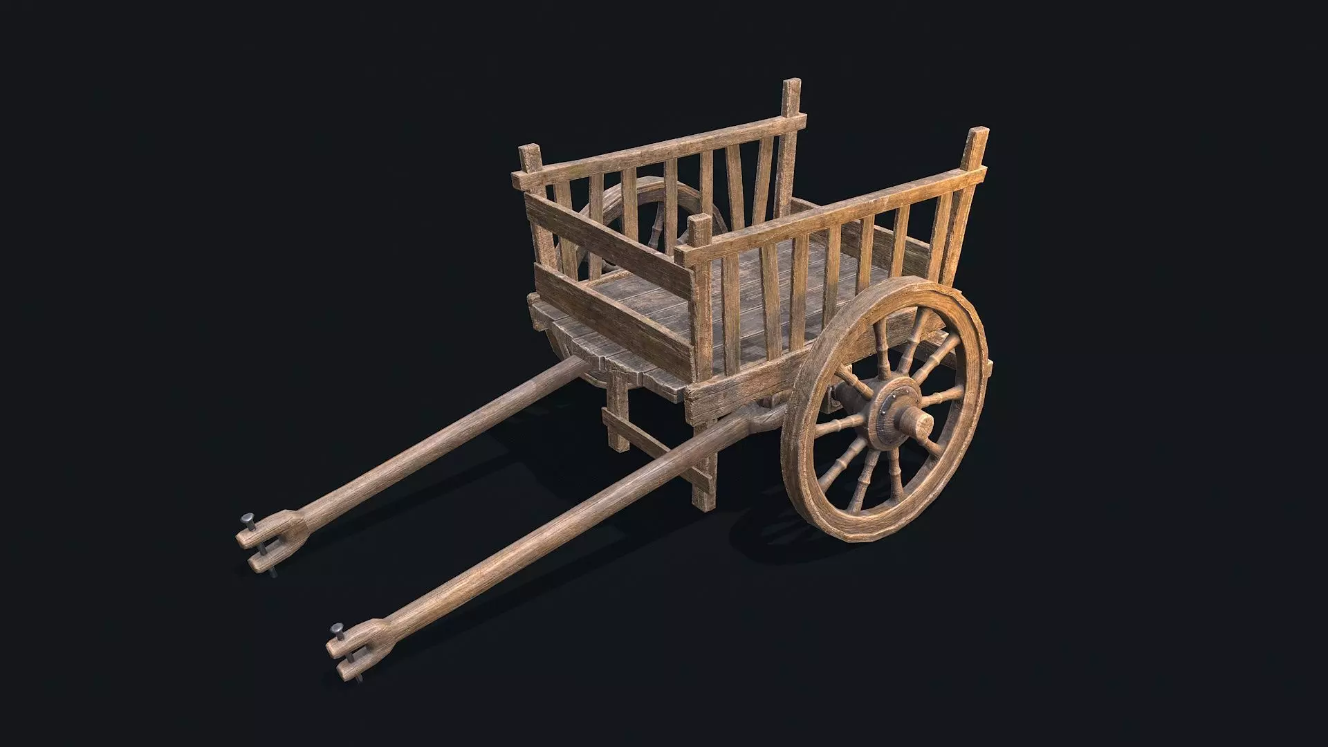 The model features realistic elements of an ancient cart, including wooden wheels, reinforced sides, and authentic medieval design. Its intricate textures and craftsmanship will help you create an immersive medieval atmosphere.