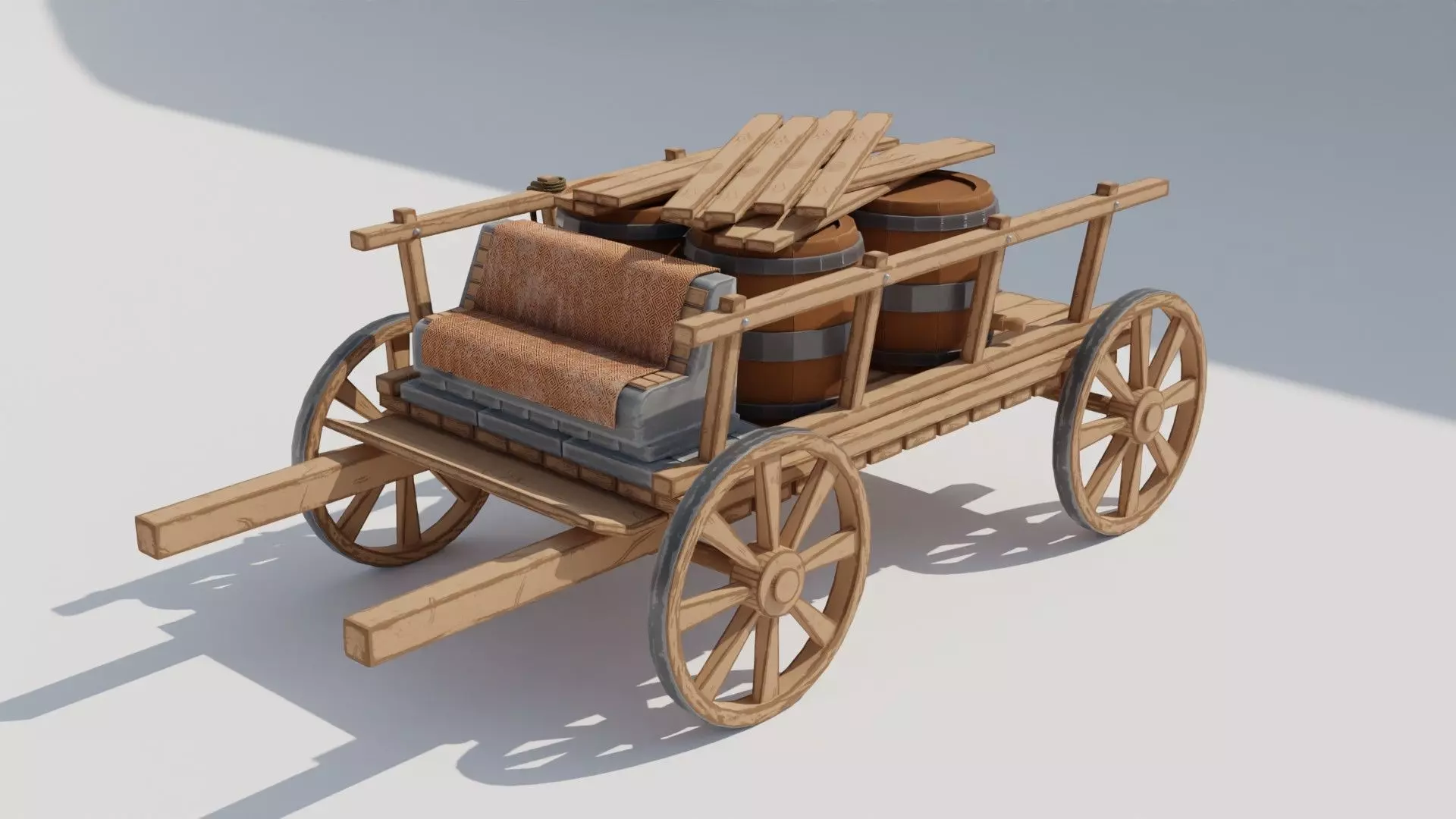Low poly Medieval cart with barrels.