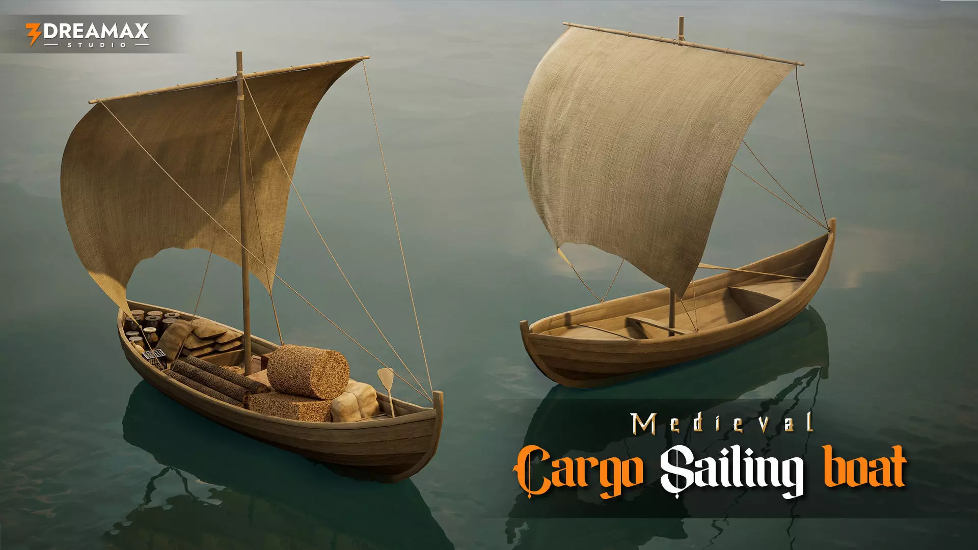 This asset features a detailed medieval cargo sailing boat designed for merchant trading and goods transport. The boat represents a small trading vessel commonly used for river trade, harbor transport, and coastal cargo delivery in medieval environments.The model includes cargo elements such as barrels, sacks, crates, and trade goods, making it ideal for creating believable harbor markets, dock trading scenes, and medieval village environments.