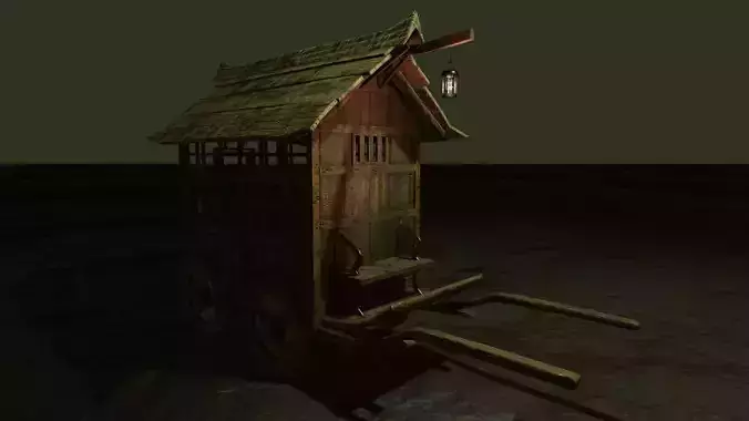 Medieval Horse Cage Cart LP 3D model prisoner carriage Low-poly 3D model