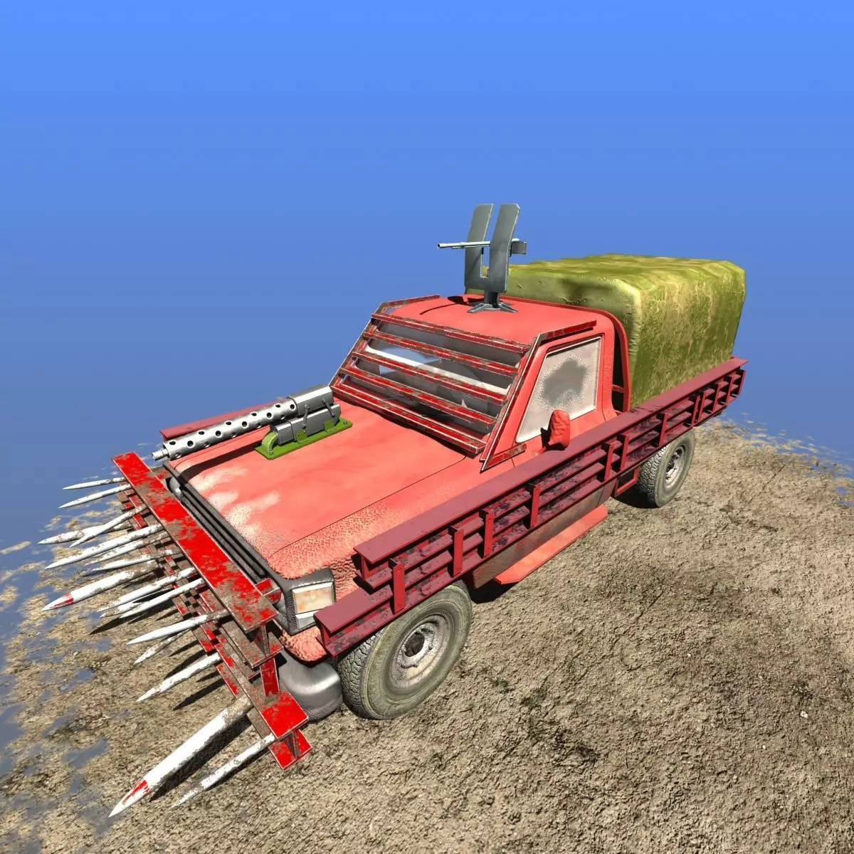 This is a mid poly off-road car with guns and accessories, Perfect for use in off-road, race, combat or even zombie games! Car have 3 guards and guns. Model is Fully materialised and textured, fully uvw-mapped. All textures(1024/2048) and materials are included. Textures include : colorsmoothnessmetalnessnormalspecularopasity. Modeled in 3d-studio Max 2016.