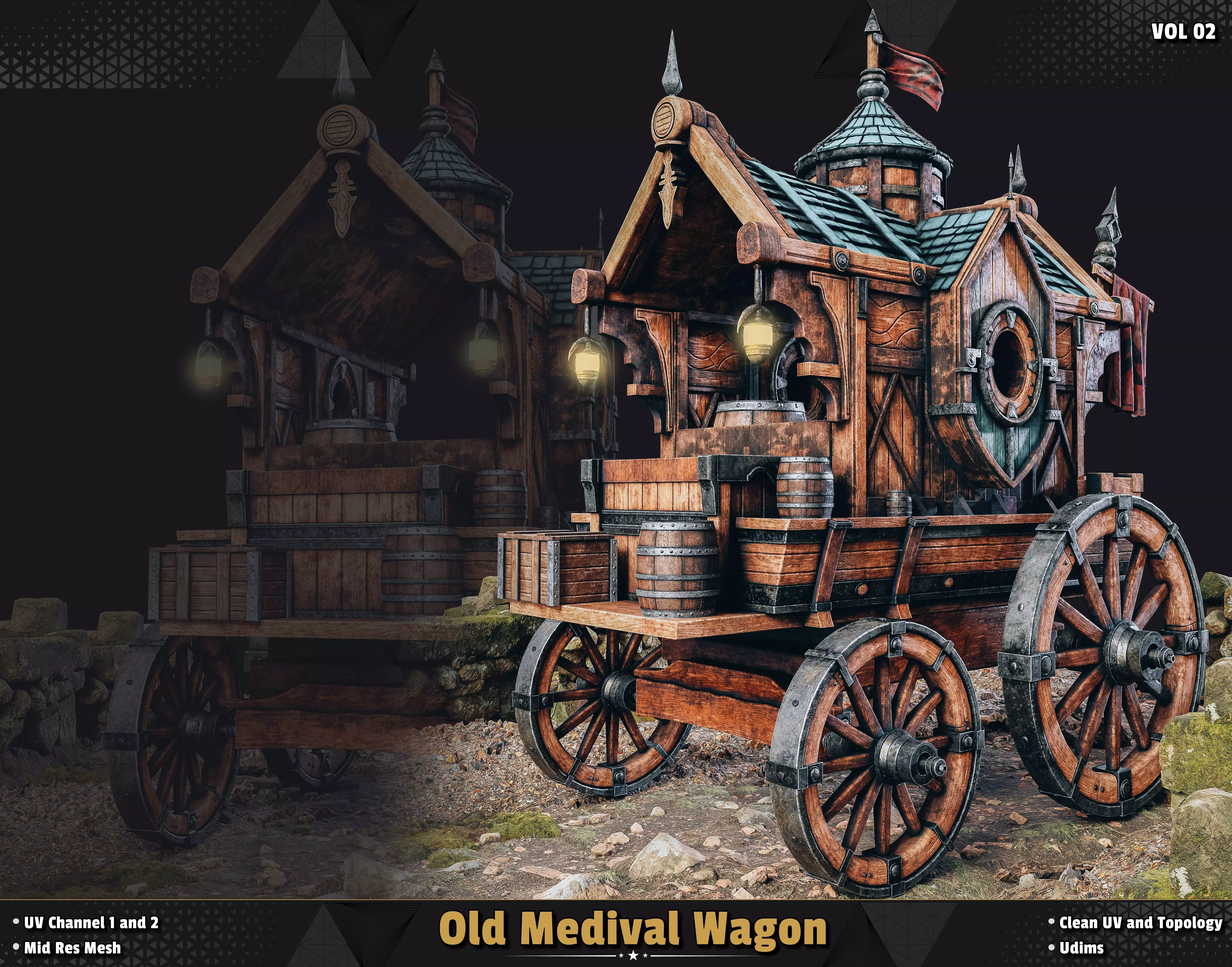 Old Medival Wagon 3D model