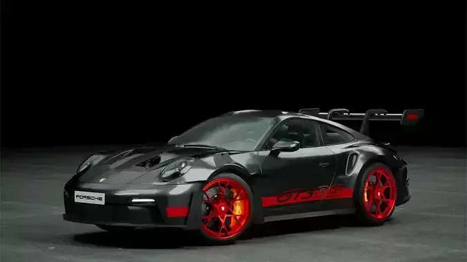 Porsche 911 992 GT3 RS Black Red Low-poly 3D model