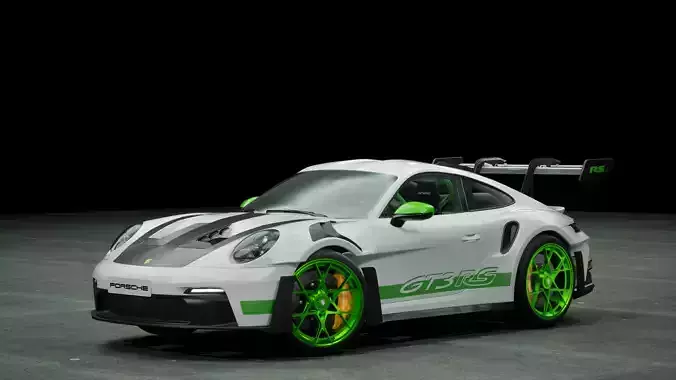 Porsche 911 992 GT3 RS White Python Green Low-poly 3D model
