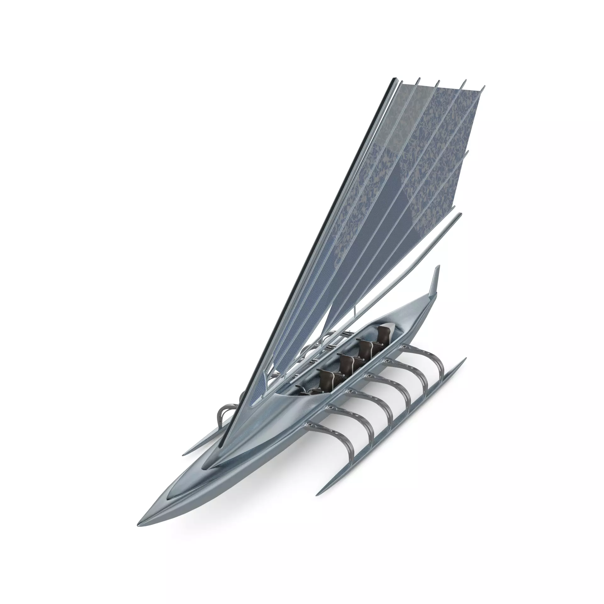 A cutting-edge racing iceboat with a modern and innovative design, featuring a translucent ice hull that seems to glow with an inner light as it glides across the frozen surface. The sail is a striking shade of metallic silver, shimmering in the sunlight and propelling the boat forward with impressive speed. The runners are sharp and precise, carving intricate patterns in the smooth snow as the boat races towards the finish line.