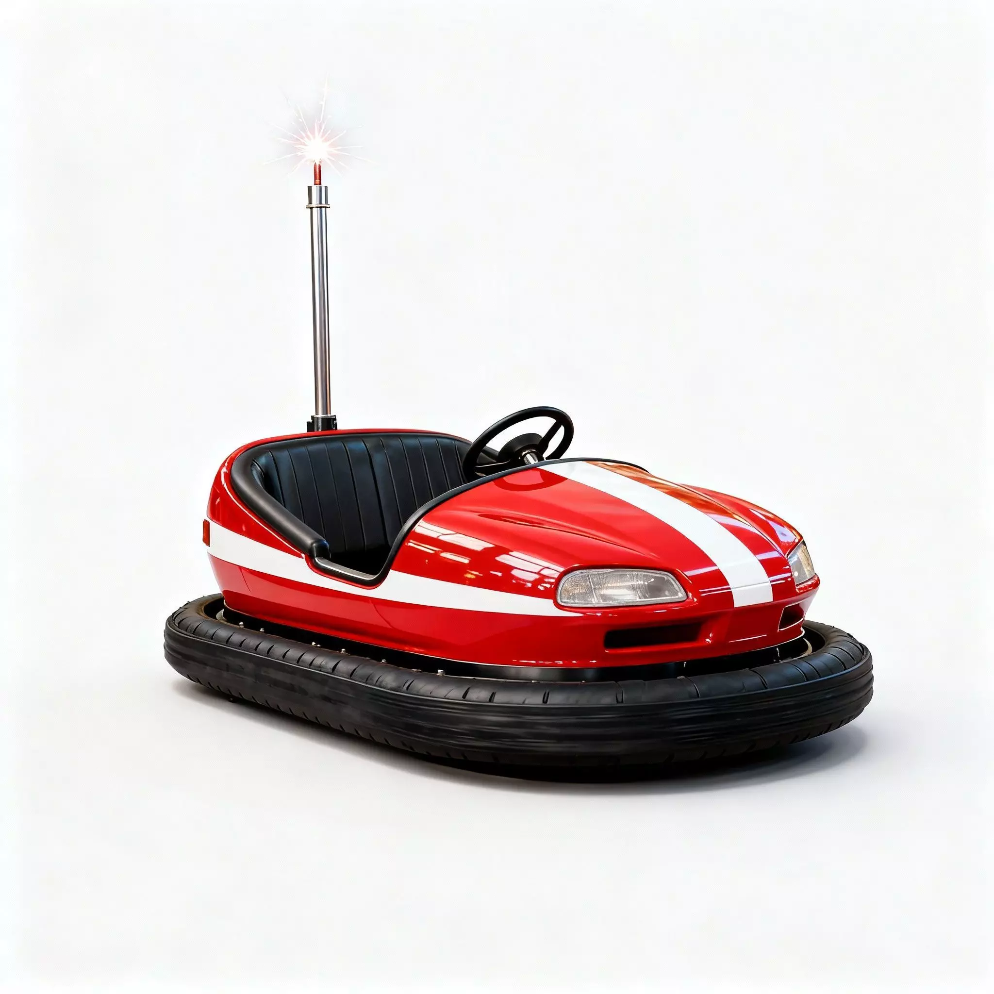 The Overall Concept The asset is a classic Dodgem style bumper car with a distinct 1960s retro-futuristic aesthetic. It balances high-gloss surfaces with rugged functional elements, making it perfect for carnival, theme park, or arcade-themed environments.