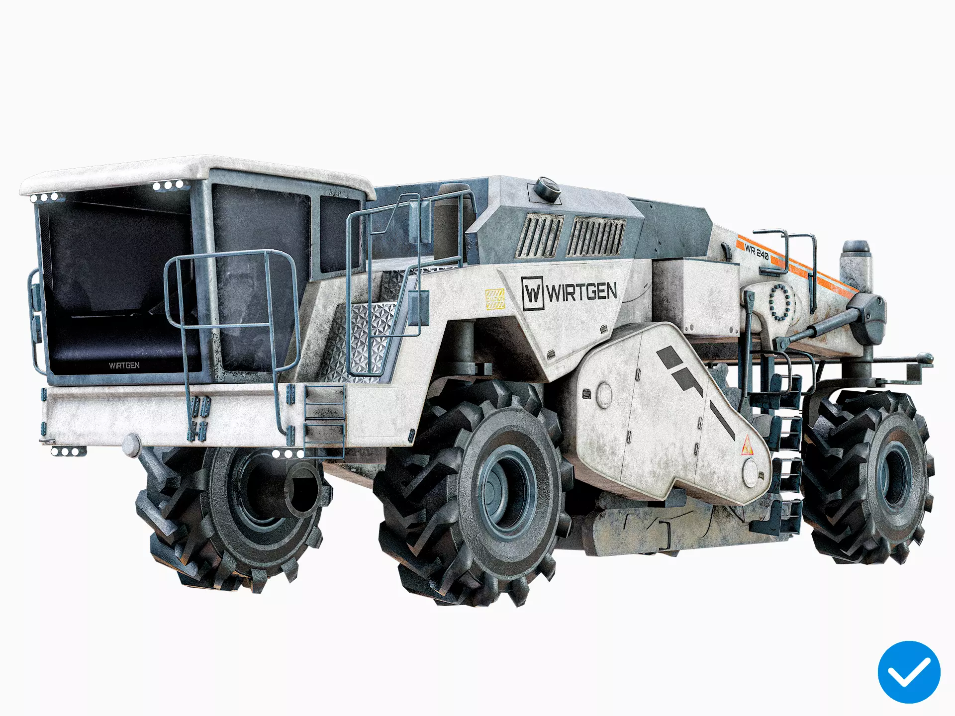 Super realistic high detailed Road Recycler And Soil Stabilizer Vehicle Wirtgen WR 240 3D Model with high resolution textures and PBR maps.8192x8192 .png textures with super high detailed materials included!The model has clean topology and it is good in any iteration of smoothing/subdiv.Game ready model - can be used in game engines and realtime scenes.Unity, Cryengine, Lumberyard, Unreal Engine etc. friendly.Rendered with the Marmoset Toolbag 5; Blender 4.5.3 version file with Cycles and EEVEE support included. Any 3D's max version friendly;