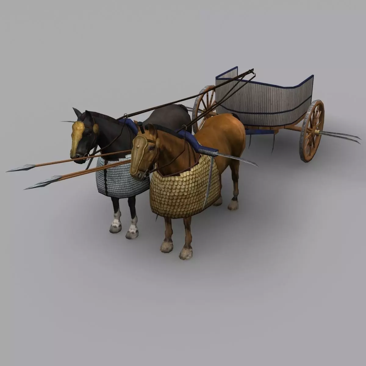 This is a model of an ancient scythed chariot, the model has a simple rig and scene contains a baked animation.