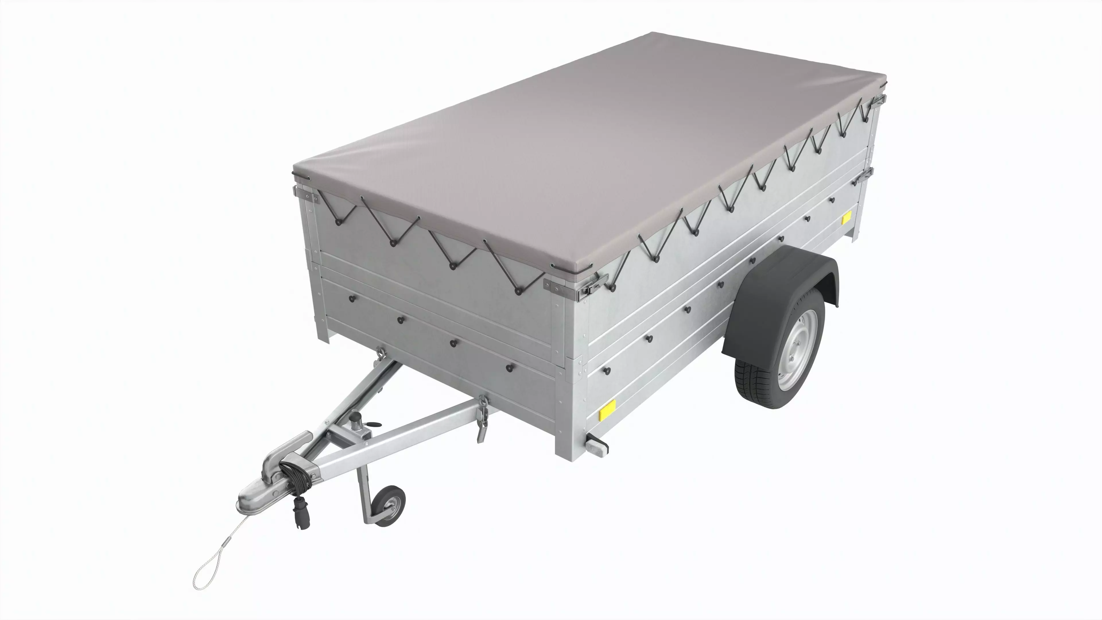 Single axle car trailer with extra walls cover jockey extended 3D model