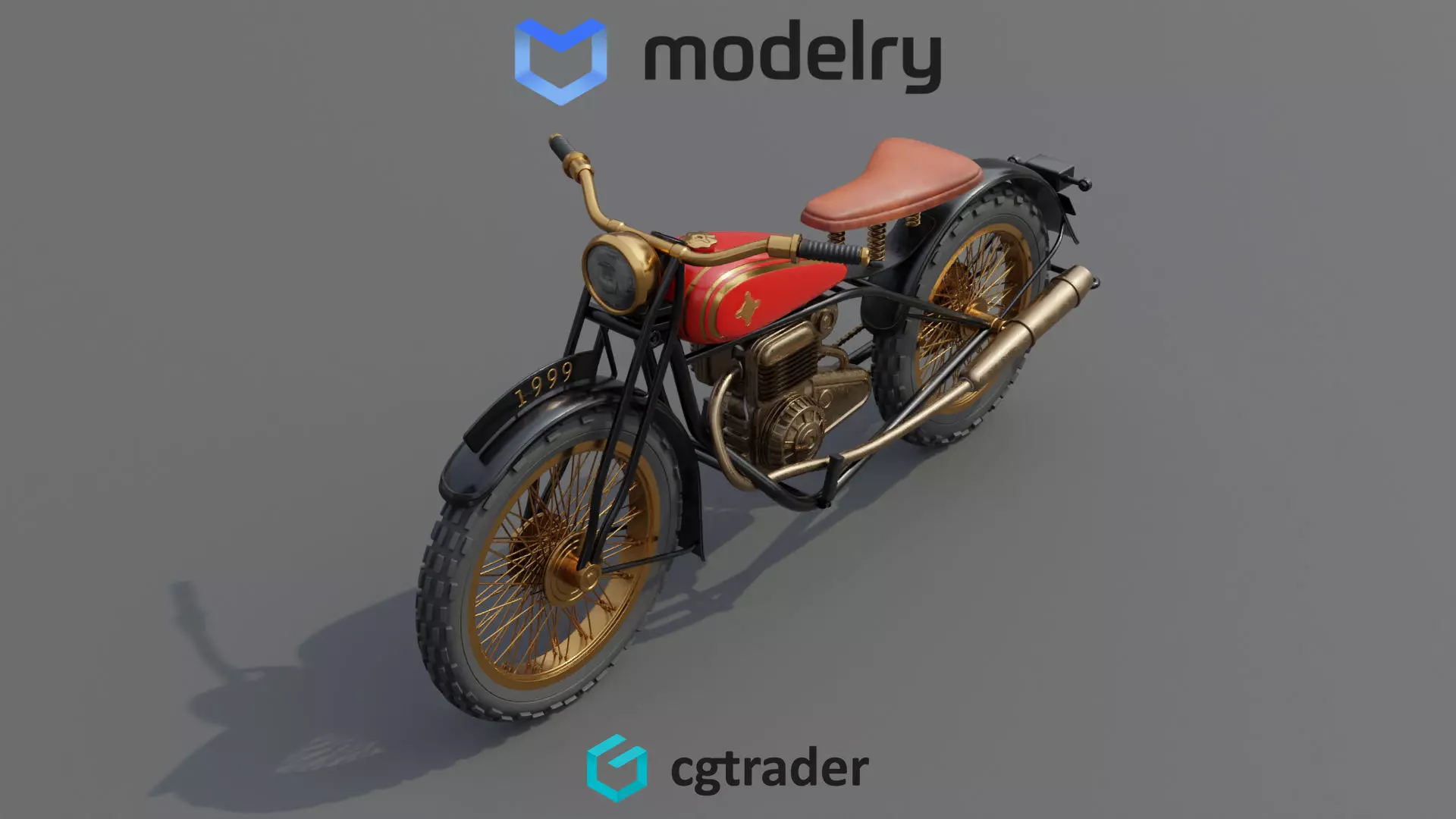 A standard motorcycle from the historical timeline, designed with a vintage flair in mind. This bike boasts a deep red color with gold trim, a rugged exposed engine, and a worn leather saddle seat. The spoked wheels and exposed suspension add to its authentic retro aesthetic, making it a standout on the streets.