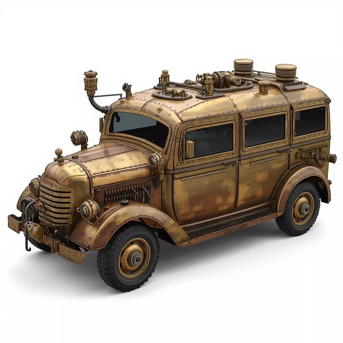 Tagssteampunk, troop transport, military vehicle, armored car, truck, victorian, industrial, brass, iron, steam engine, war machine, transport, 3d model, game asset, prop