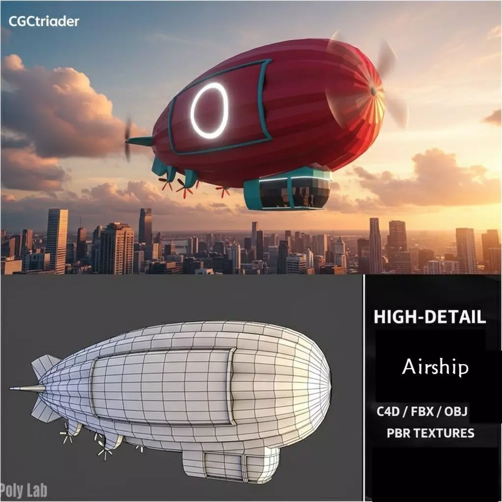 A high quality stylized 3D model of a cartoon airship zeppelin perfect for mobile games animations and creative advertising.